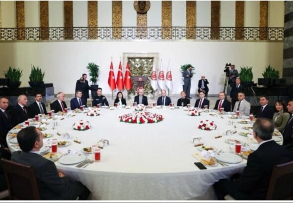 TBMM’de düzenlenen iftar programına Cumhurbaşkanı Recep Tayyip Erdoğan, DEM Parti Eş Genel Başkanı Tuncer Bakırhan, Saadet Partisi...