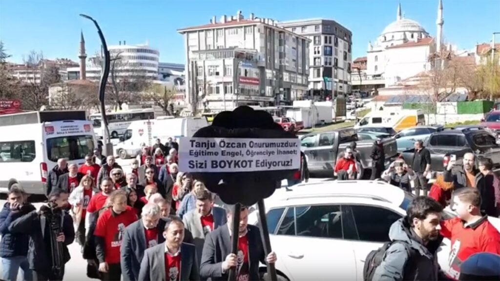 CHP Bolu İl Başkanı Tahsin Mert Karagöz, Bolu Belediye Başkan Vekili Mehmet Tuna Özcan, Merkez İlçe Başkanı Çetin Uç ve CHP’li Belediye Meclis üyelerinden oluşan heyet, Aktaş Mahallesi’nde bulunan bazı zincir marketlerin şubelerine üzerinde “Tanju Özcan Onurumuzdur. Eğitime Engel, Öğrenciye İhanet; Sizi Protesto Ediyoruz” yazılı siyah çelenk bıraktı.