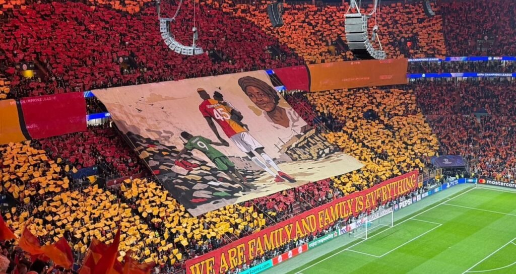 UEFA Şampiyonlar Ligi son 16 turu ilk maçında Galatasaray’ın Liverpool’u konuk ettiği karşılaşma öncesinde sarı-kırmızılı taraftarlar duygu dolu bir koreografiye imza attı.