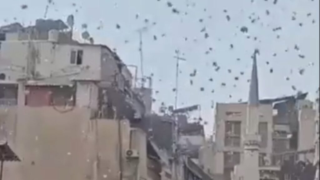 Neredeyse her gün İsrail saldırılarıyla baş etmek zorunda kalan Lübnan’ın Dahiye mahallesine bu kez bombalar değil, kağıtlar yağmaya başladı.