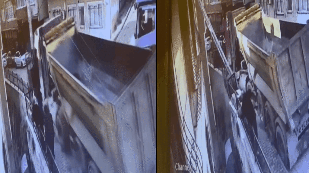Kaza anı güvenlik kamerasına yansıdı. Görüntülerde hafriyat kamyonunun yokuştan kayarak kaldırıma çıktığı ardından aydınlatma direğine çarptığı anlar görülüyor. Şoförün kamyonu durdurmaya çalıştığı sırada hayatını kaybettiği anlar da görüntülerde yer alıyor.
