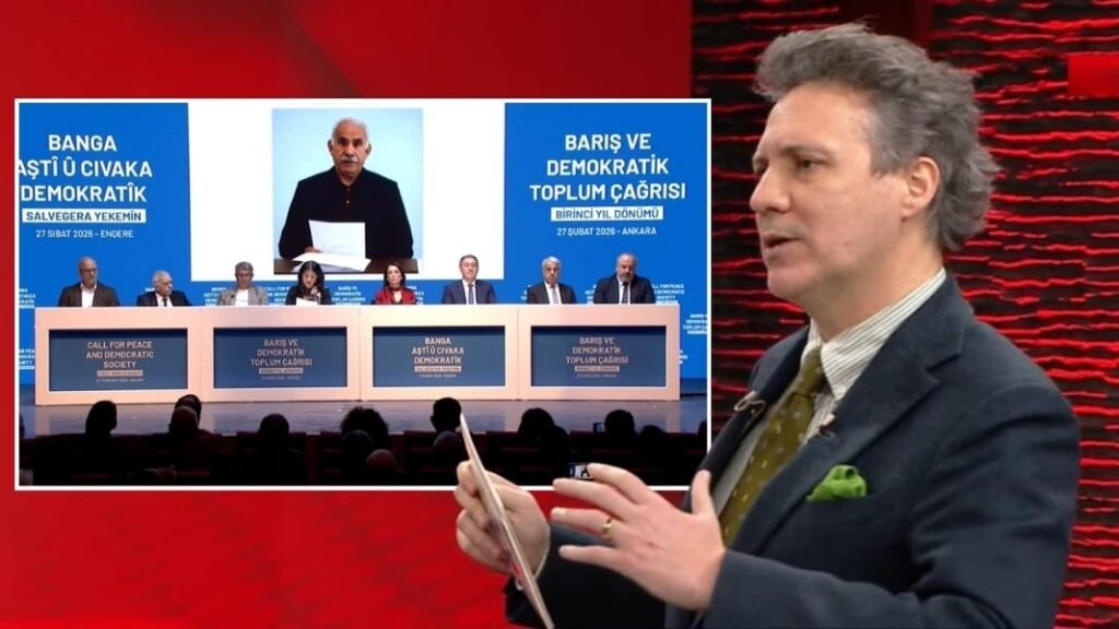 Okunan mesajla birlikte heyetin toplandığı salonun karesi ve Öcalan’ın mesajının siyasal iletişimdeki “alt metinleri” Sözcü TV Ana Haber’de masaya yatırıldı.