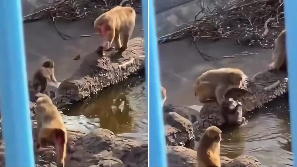 Sosyal medyada paylaşılan son görüntülerde Punch’ın yaşlı bir maymun tarafından gölete atıldığı görüldü.
